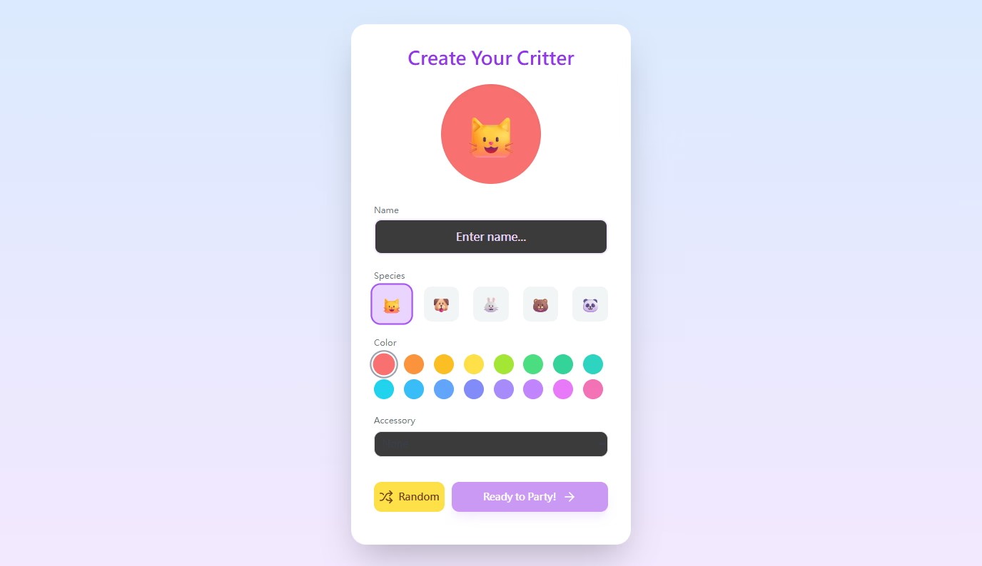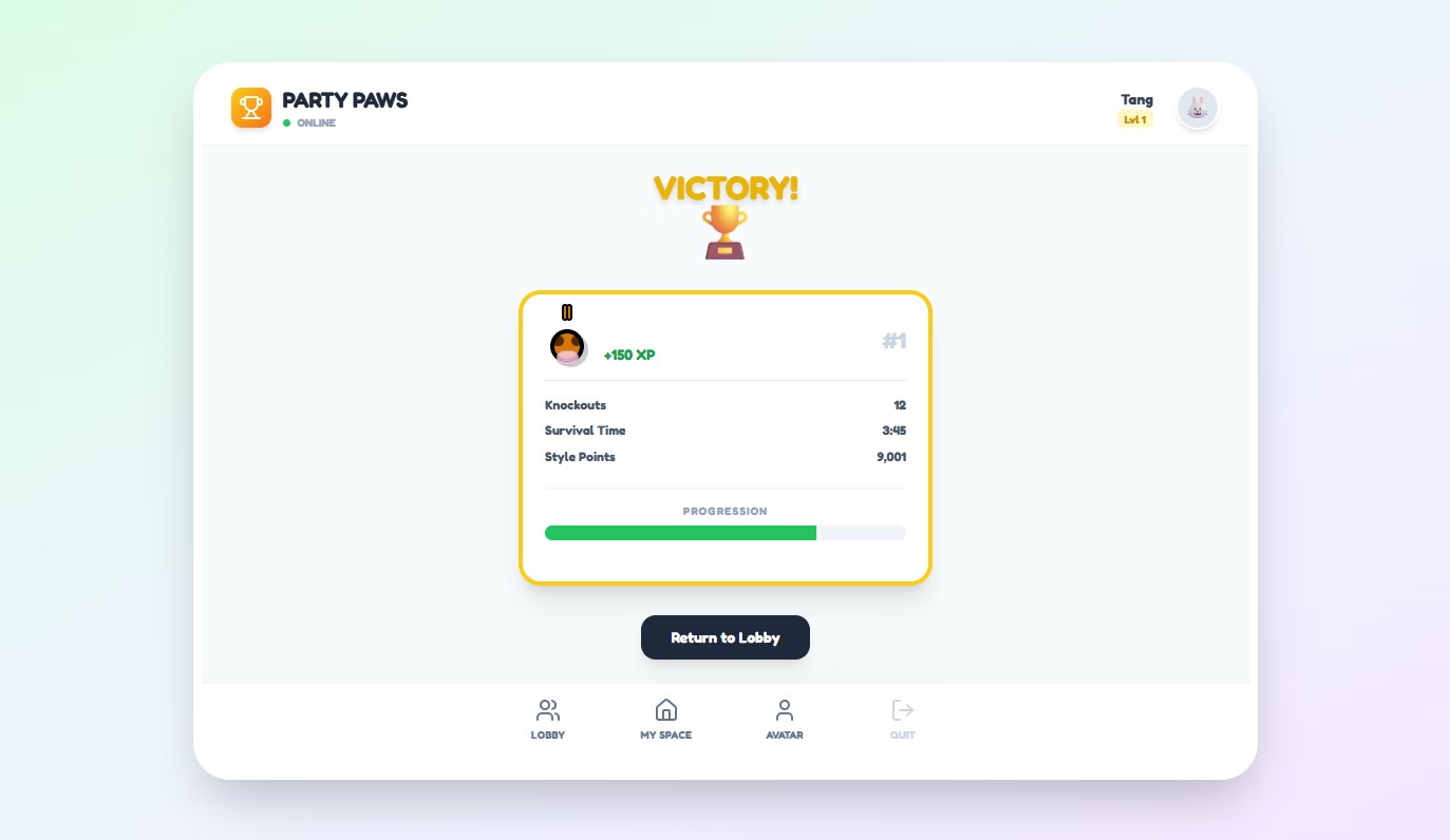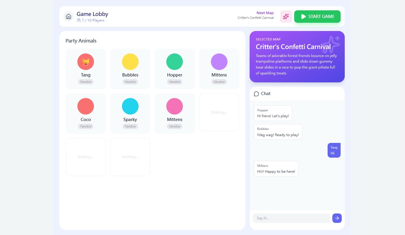 Refer to “Animal Party” and add fun elements like character creation, personal space, chat, and ranking.