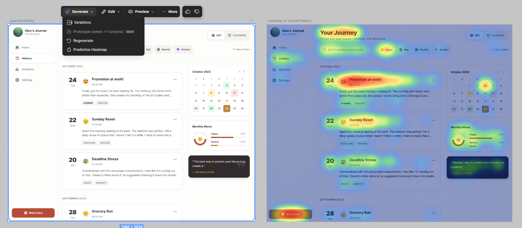 Using Stitch to predict heatmaps gives a fast way to evaluate key actions and understand visual hierarchy. It helps reduce early development effort when user testing isn’t possible. The tool is still new, so the results can be inconsistent. One of my tests even showed a heatmap from an entirely different screen, reminding me to use the insights with caution.