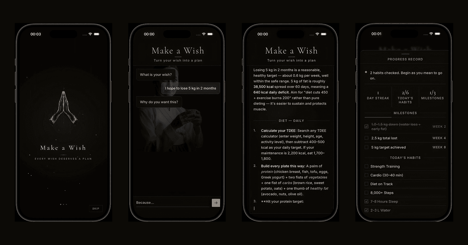 Inspired by a Netflix series, I explored the idea of turning wishes into structured inputs, where users reflect on their desires and intentions.