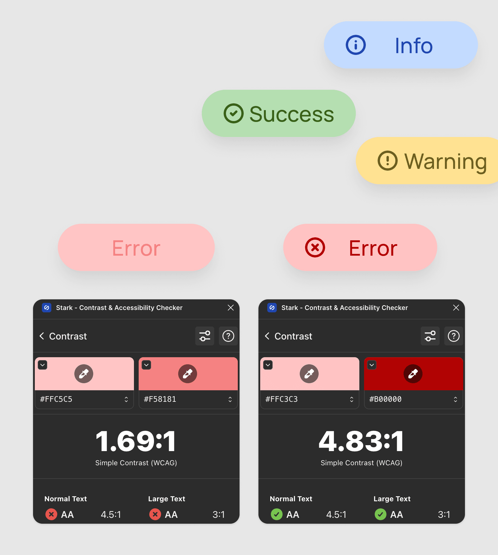 Identified insufficient contrast in key UI elements that impacted readability. Through a color system audit and WCAG AA validation using the Stark plugin, I refined 21 chip color variants while preserving brand consistency, resulting in improved visual hierarchy and accessibility.