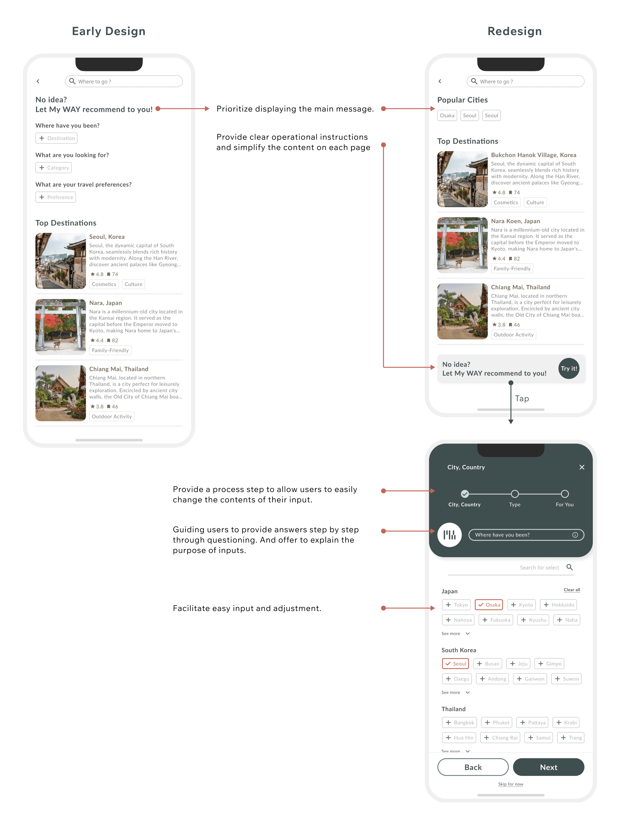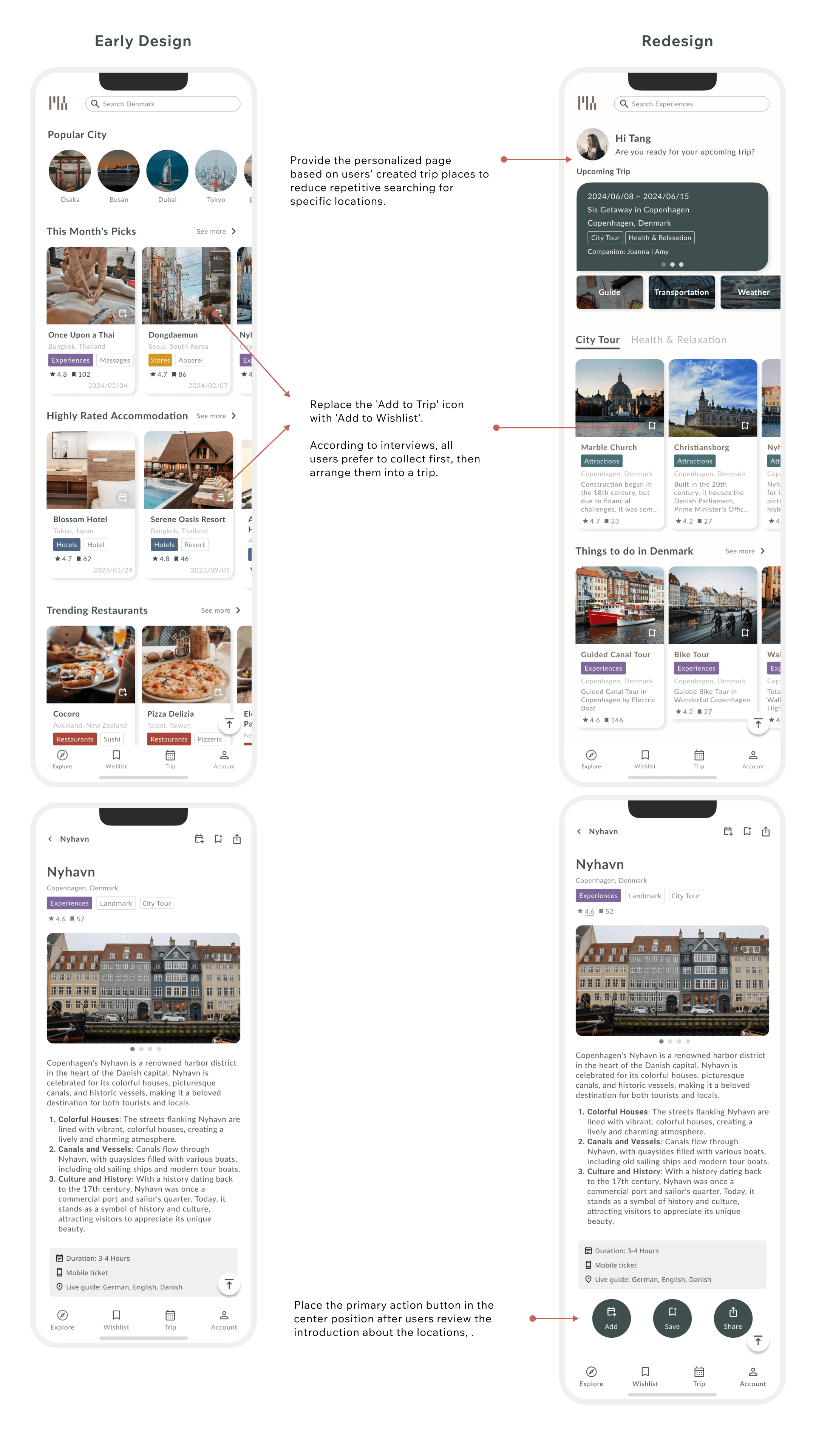 Offered two versions for users: one for those in the exploration phase and another for those with specific target places, providing a more personalized page.